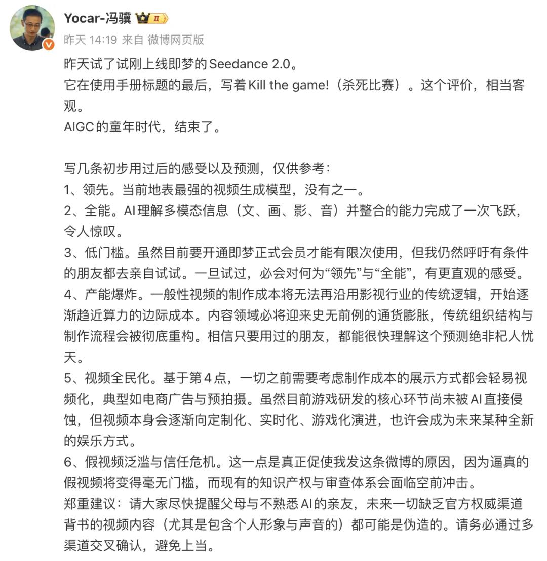 Seedance 2.0虽不完美,但AI对多数行业的冲击真实且长远。