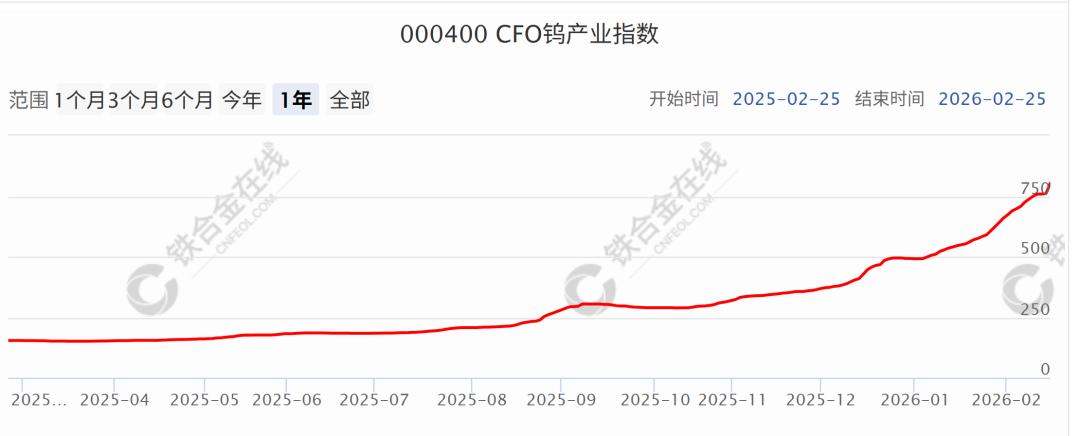 据中钨在线最新统计,截至2026年2月24日,钨产业链上下游全线飘红。