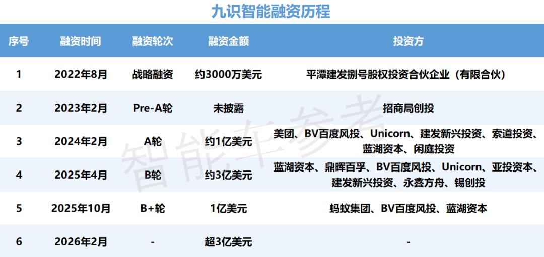 这是九识成立以来的第六轮融资,也是2026年开年L4无人配送赛道首笔公开大额融资。
