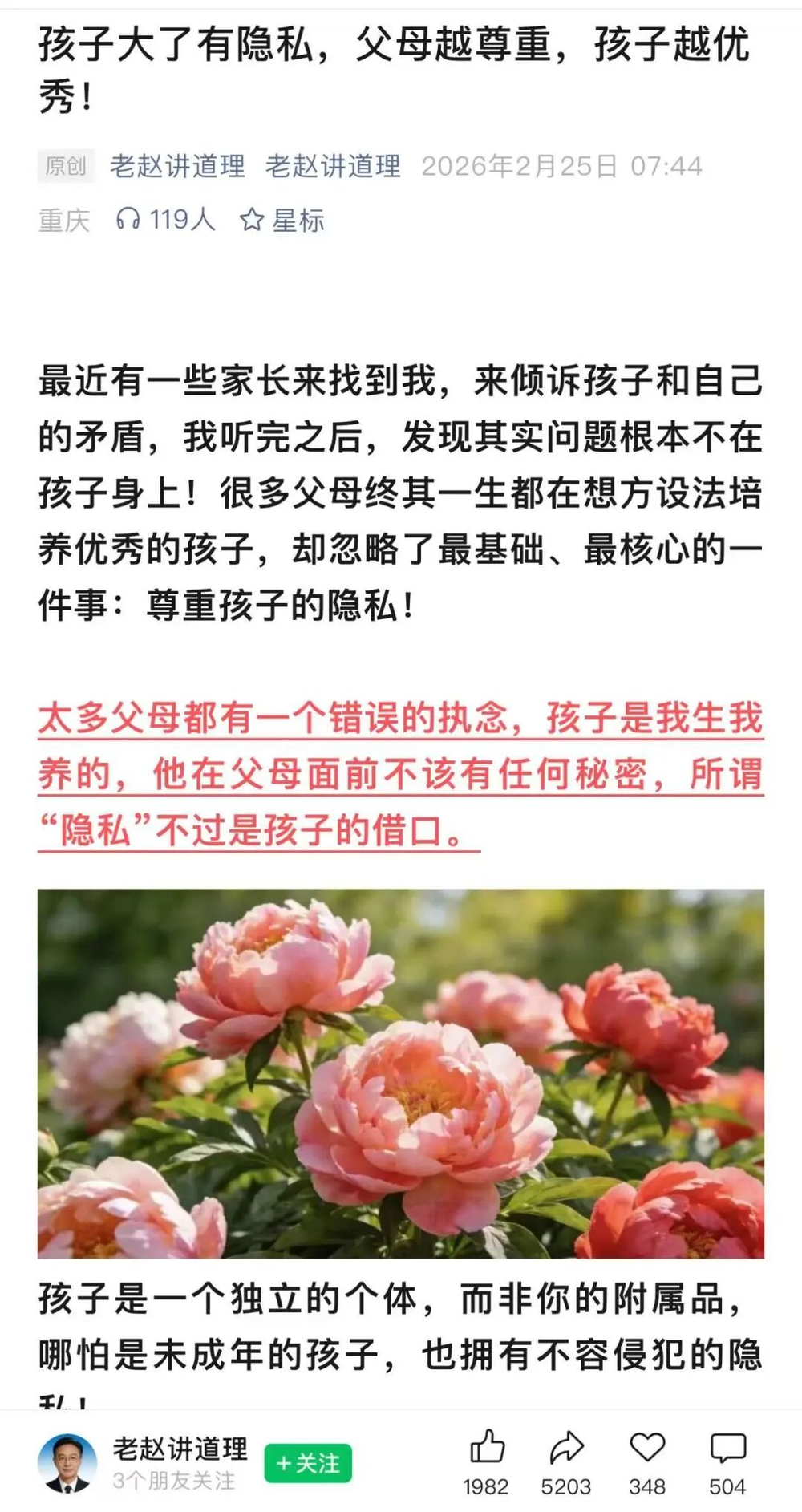 更让“老赵”开心的是,她的文章不仅让年轻人释放了情绪,还真影响了部分中老年读者。有的家长私聊求助怎么和孩子沟通,有的看完后决定改改说话方式。