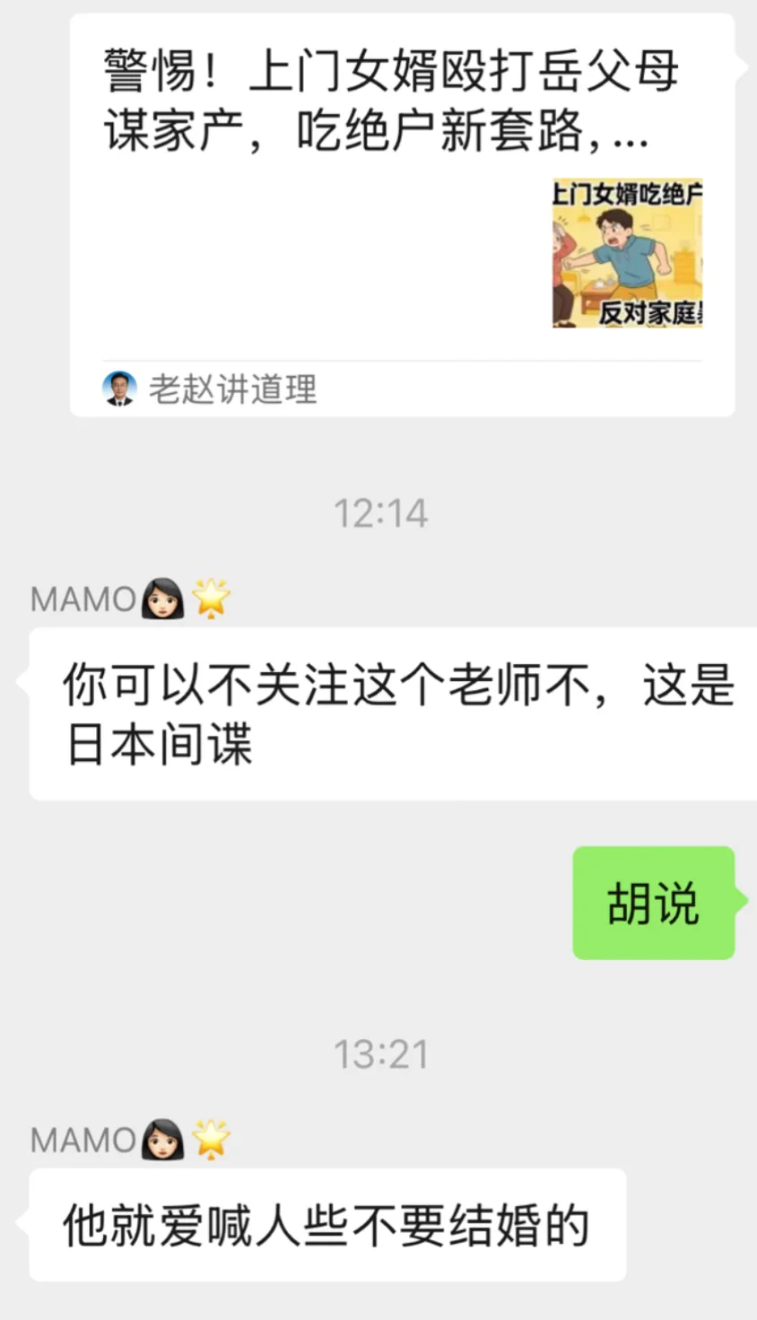 现在“老赵”成了部分长辈的“眼中钉”。有网友妈妈急了,直接把“老赵”当成“霓虹间谍”,就因为她总劝别催婚生孩子。