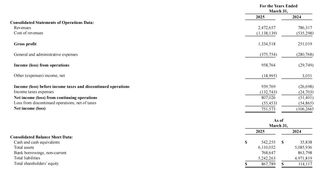 对投资者而言,汇生活财务数据有两大核心看点:一是扭亏为盈,二是精准绑定内地赴港留学红利。财务数据显示,2024-2025财年(截至3月31日),公司营收从79万美元增至247万美元,同比增长超2倍;净利润从上一年亏损11万美元转为盈利75万美元。