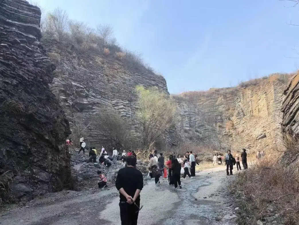 电影带火陶家村后,不少游客专程赶来体验“挖宝”乐趣。原来,陶家村所在区域盛产黄铁矿,游客们把废弃矿坑当作天然矿场,手持工具敲打地面石块,期待能找到黄铁矿。高峰时期,山谷里有上百人同时“挖矿”,狭窄的村道也停满了车辆。