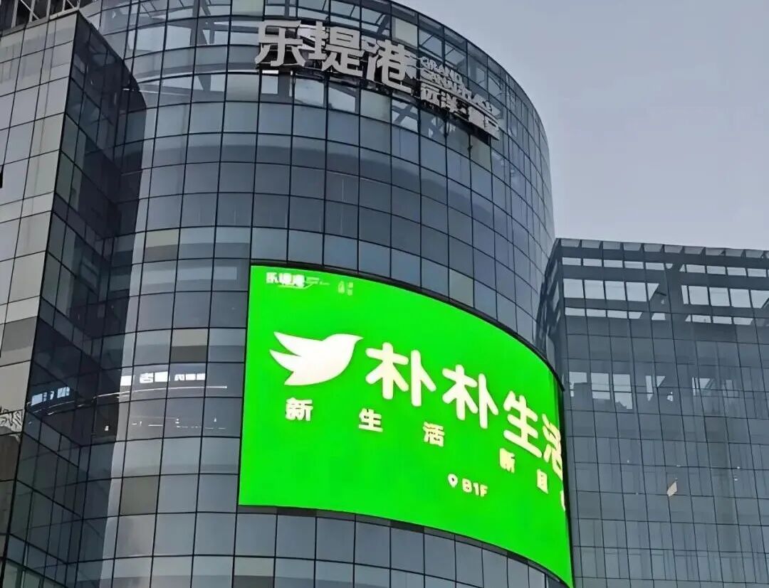 远洋德呈乐堤港商场外围已随处可见朴朴超市的品牌标识,户外导视牌、楼层指引牌均有标注,大屏也在播放广告,B1层指引明确包含朴朴超市,可见商场已提前做好招商宣传与客流引导。