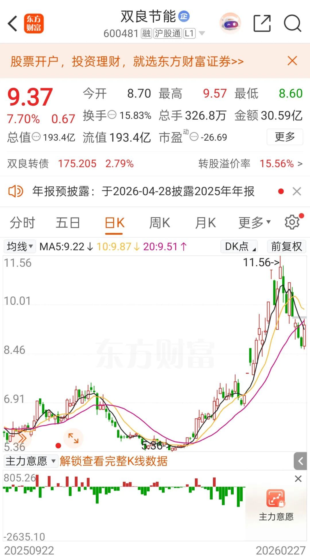 截至2月27日收盘,双良节能股价报9.37元,上涨7.70%,总市值为193.41亿元。