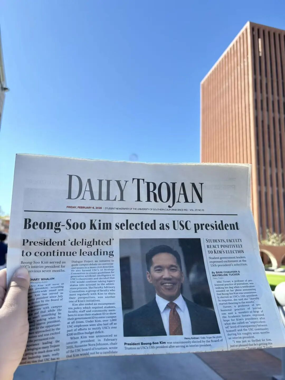 ■访校当天,USC校报正宣传新任校长——他是该校历史上首位亚裔校长,上任后宣布2027Fall开始新增ED轮次