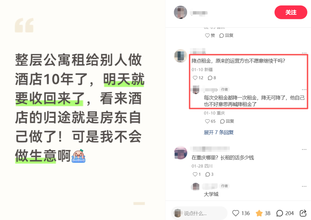 “也不全是,这得看房子属于什么类型的物业。”广东某酒店投资人A总向笔者透露,房东在出租物业时,起初大多希望能拿到较高的租金。但当酒店市场行情走弱,同质化竞争加剧,客房价格难以维持时,不同类型房东的态度会出现明显分化。