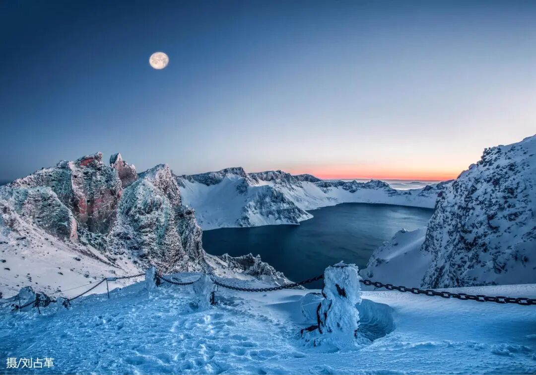 长白山,群峰环绕,天池如镜,天地间一轮皓月高悬,山与月交相辉映,是震撼人心的壮阔团圆之景。