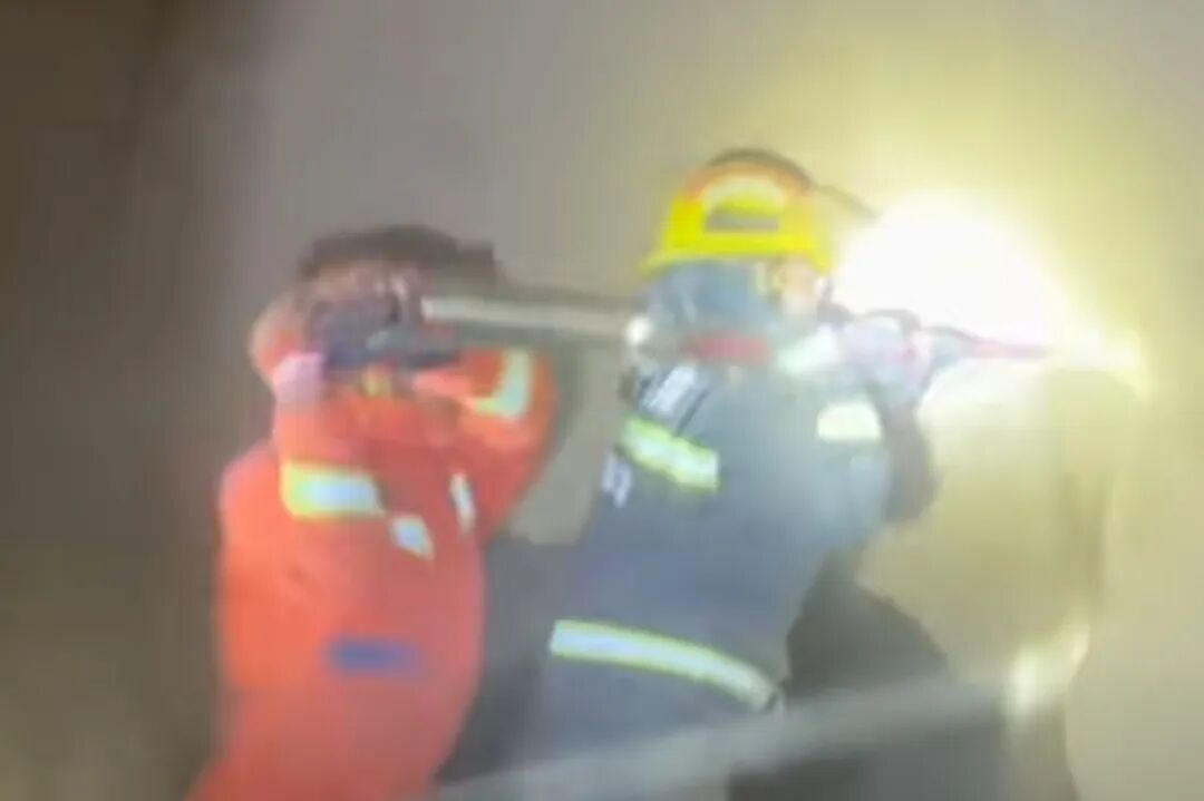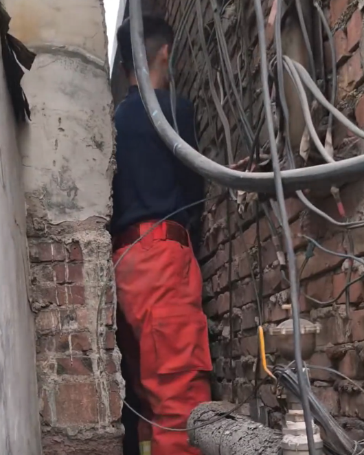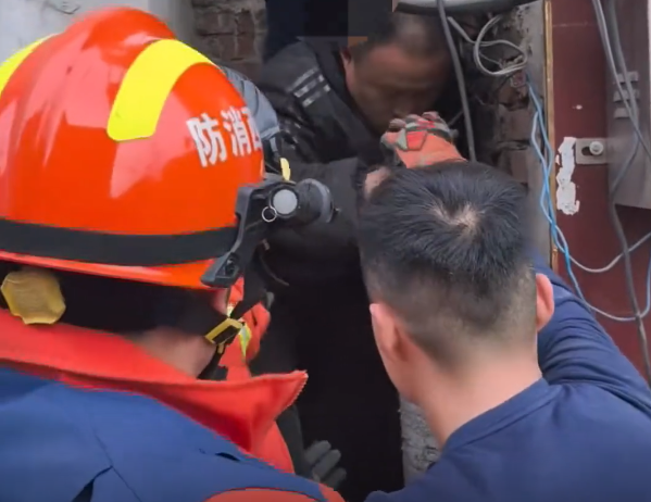 井壁卡困危机!消防员40分钟凿通生命通道