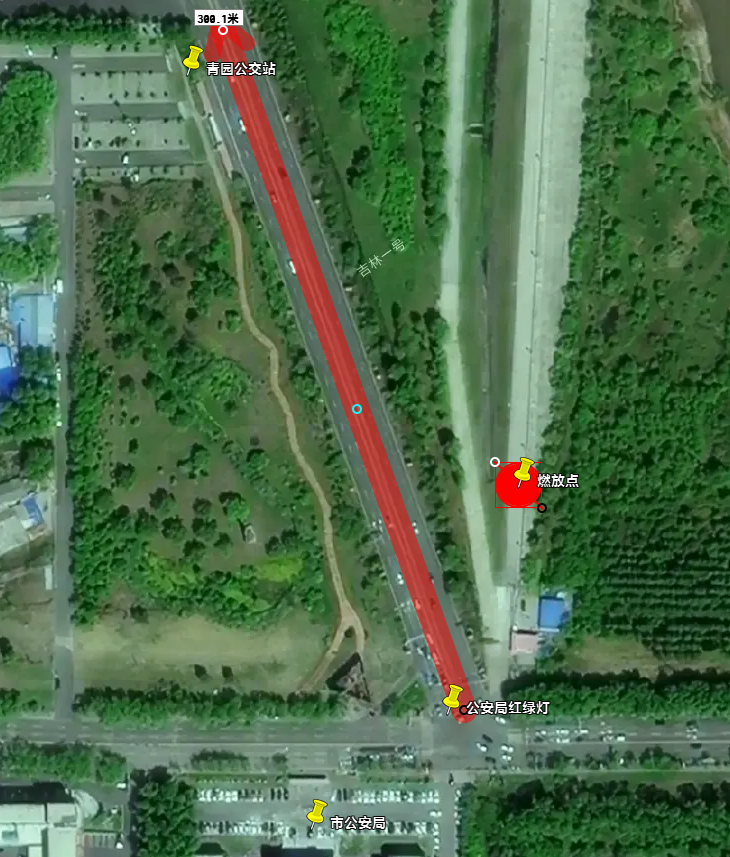 二、环城路青园公交站台至沿河街与环城路交叉口红绿灯处为警戒区域,禁止任何人员进入。(附示意图)