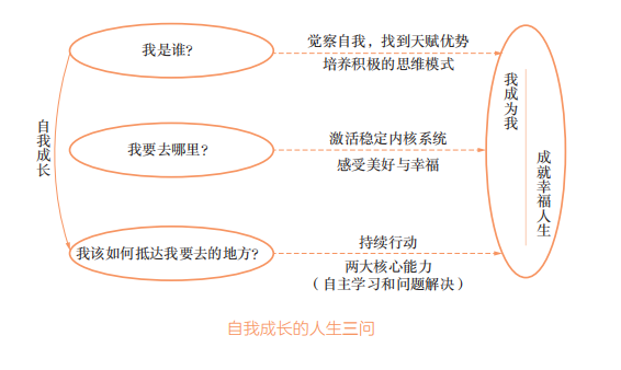 每个“当下的我”都有生活中具体的阶段性目标,成长正是在实现这些阶段性目标的过程中发生的。我们从“我是谁”到“我成为我”,从“我要去哪里”到“成就幸福人生”。这种蜕变是在动态变化的目标指引下,通过持续行动完成的。