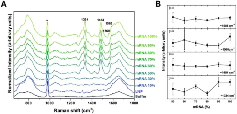 从“实验室”到“生产一线”:合作者Alexander Shekhtman教授指出,“完整的LNP不稳定,很难用现有技术表征。拉曼光谱让我们能在不破坏的情况下分析LNP内部的mRNA,这意味着我们可以更快地筛选和优化配方。”