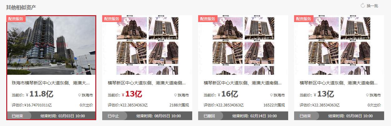 2025-2026年,珠海多宗商办、综合体项目进入法拍市场,普遍呈现高评估、低起拍、多次流拍的特征。