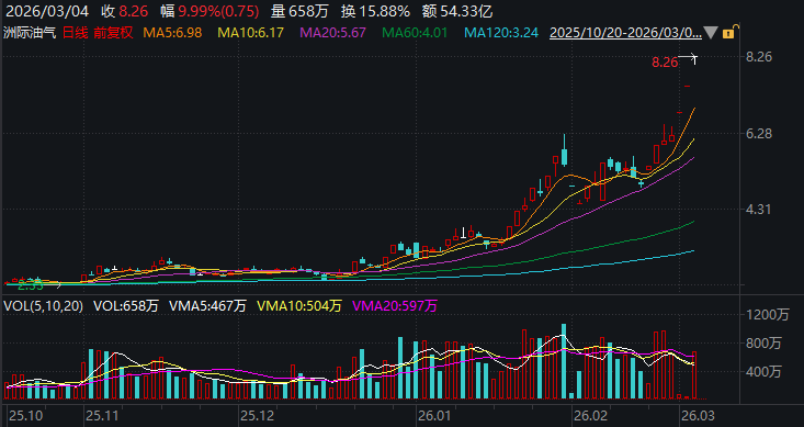 3月4日晚间,洲际油气(600759)发布公告提示多项投资风险。当日公司股价再度涨停,至此已连续3个交易日涨停,近7个交易日内收获5个涨停板,股价表现十分活跃。
