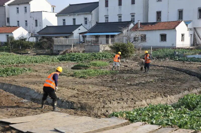 如今,新元村各个角落的沪派江南新元单元项目建设,让这片水乡大地悄然蜕变,昔日村庄街巷、河岸林地在施工中焕发新颜。随着各项工程有序推进,兼具沪派韵味与江南风情、生态优美与生活宜居的新元村,正从蓝图逐步变为现实。
