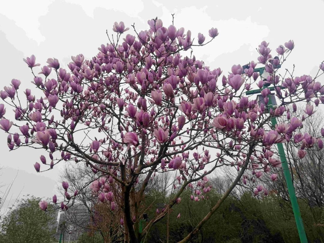 市区的中洲公园与三江口体育公园内,玉兰花悄然绽放,花朵亭亭玉立,为兰城增添了盎然春意与蓬勃生机。