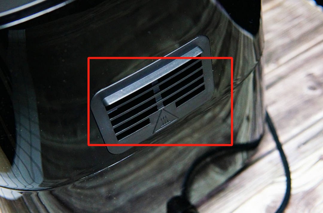使用空气炸锅时,要将其平稳放置,不能遮挡顶部进风口和背面出风口。