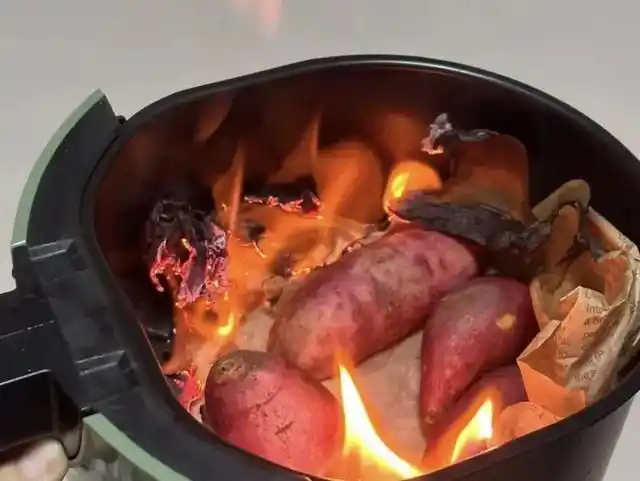 2023年12月24日,湖南一位女士用空气炸锅烤番薯,结果吸油纸着火,幸好发现及时,没有造成严重损失。