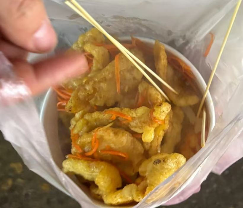 东北锅包肉摊位前,十几人排着长队。推着行李箱的李冰心说,她当晚要乘火车返回沈阳上学,特意绕路来打卡。“小吃多到眼花缭乱,好一阵子没吃锅包肉了,排队半小时很值,就是记忆中的味道!”