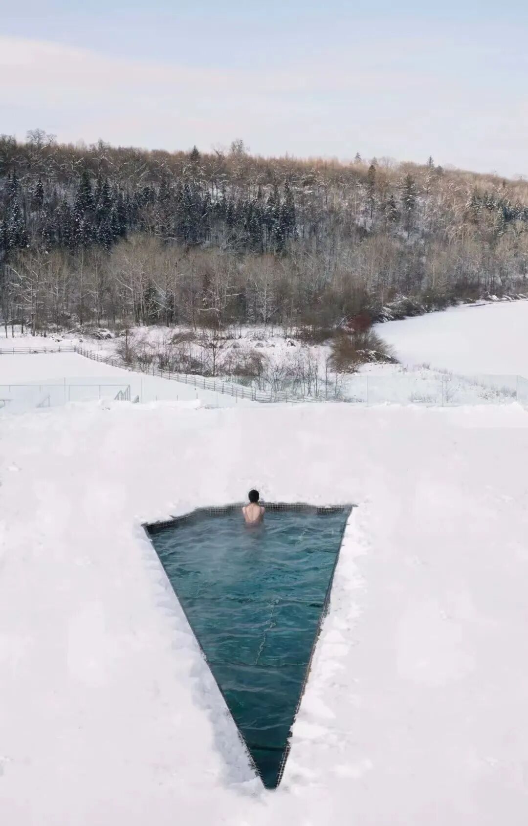 室外泡池可赏春雪覆枝、热气升腾的景致