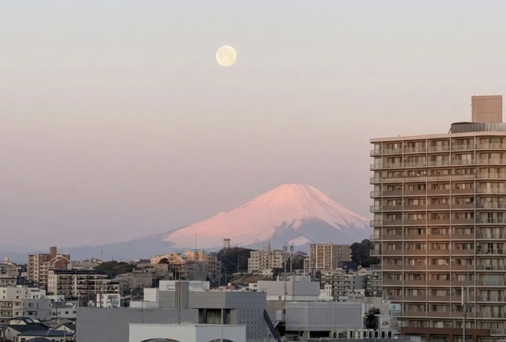 (倒时差时坐在台前写这篇随感,抬头看到的粉色富士山)
