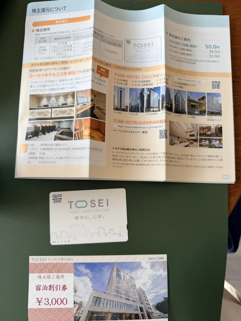 6、信箱里躺着来日本后买的第一只股票的股东回馈礼物。当初选它,就是看中每年能拿到镰仓住处附近酒店的3000日元优惠券。这次除了逐年上调的股息,因持股超两年还额外收到一张2000日元的超市卡,实在贴心。