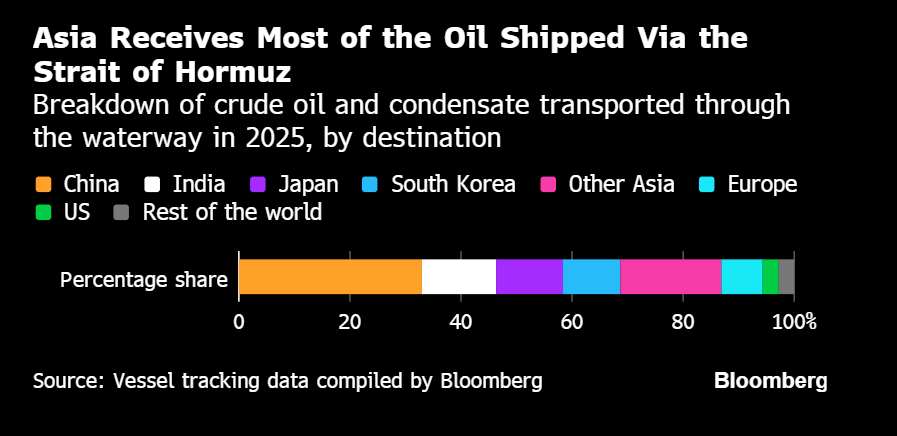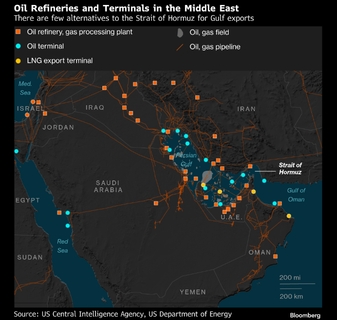 海湾国家还拥有庞大的炼油产能,通过该海峡向全球输出柴油、用于生产塑料和汽油的石脑油等石油产品。