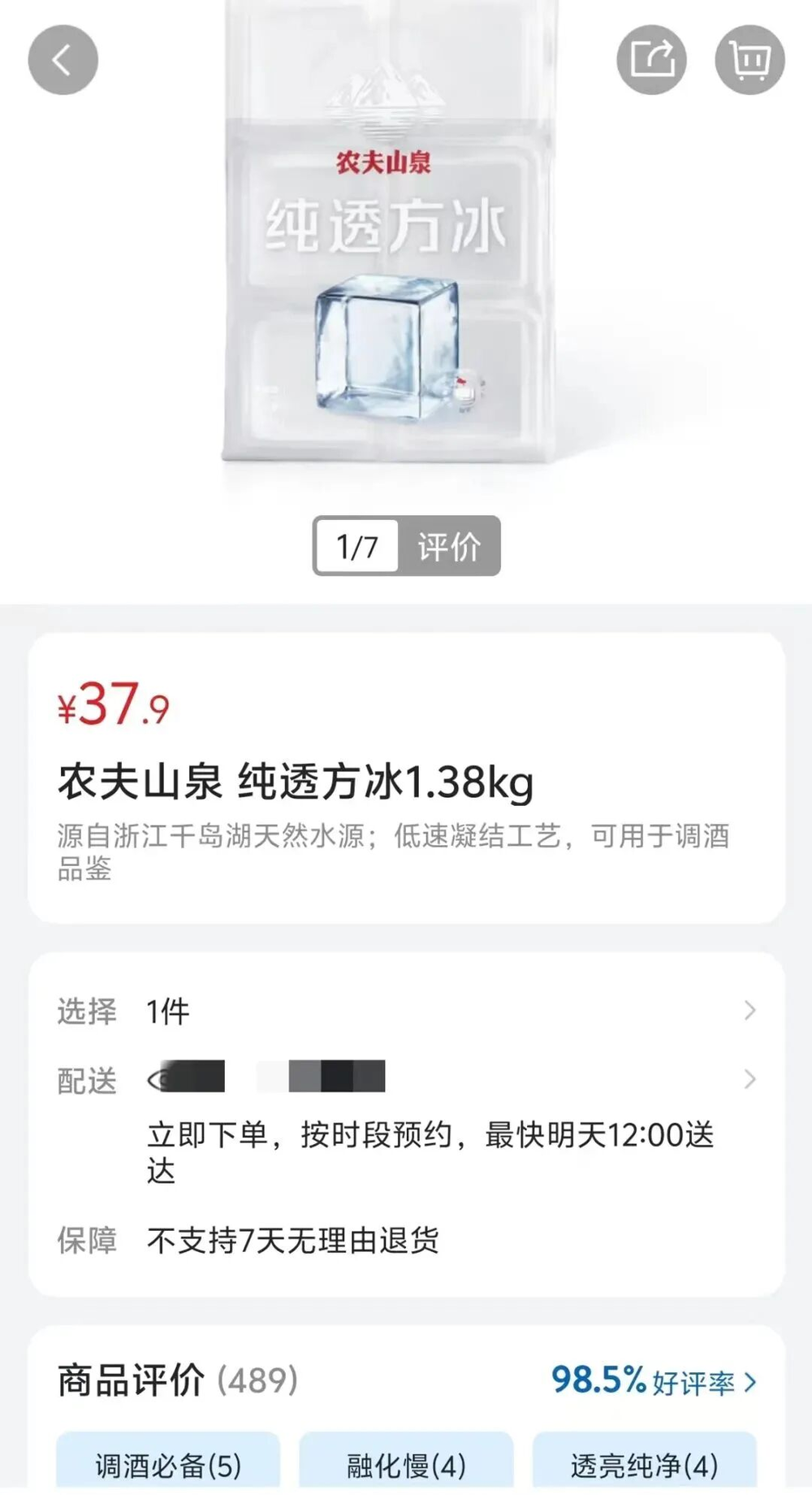 有网友在山姆购物时,发现了一款名为“农夫山泉纯透方冰”的产品,售价37.9元,净含量1.38公斤。换算下来,每斤冰的价格接近14元,比两斤猪肉还要贵。这位网友拍下照片并发出疑问:“这和我自己用矿泉水冻的冰有什么不一样?”
