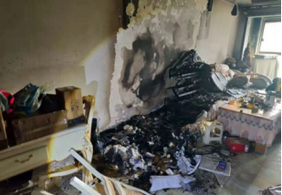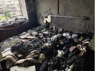 2025年10月,贵州省贵阳市某小区一居民外出时忘记拔掉床头插线板上的台灯。回家时,整个卧室已被大火烧毁。