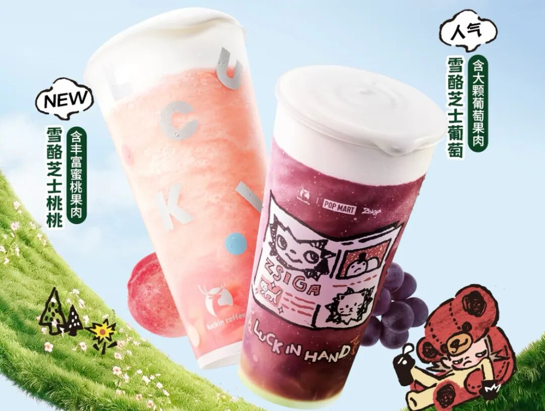 2025年,瑞幸非咖啡饮品杯量占比突破20%,全年推出的140余款新品中,茶饮类占比达23.8%。今年3月初,瑞幸又推出“雪酪芝士葡萄”和“雪酪芝士桃桃”两款大杯果茶新品。