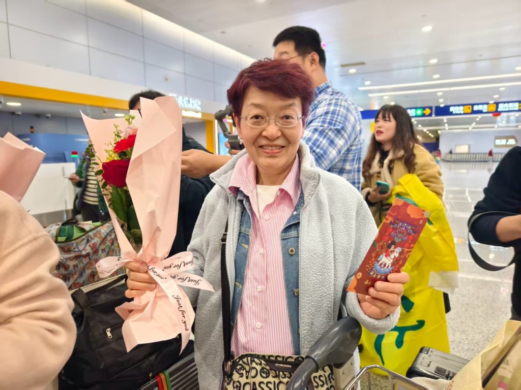 一同抵达的熊女士带着祖孙三人回国,此前他们在中东游玩时曾听到爆炸声,旅途一度十分紧张。踏上祖国土地的那一刻,熊女士感慨道:“终于回到了祖国的怀抱。”