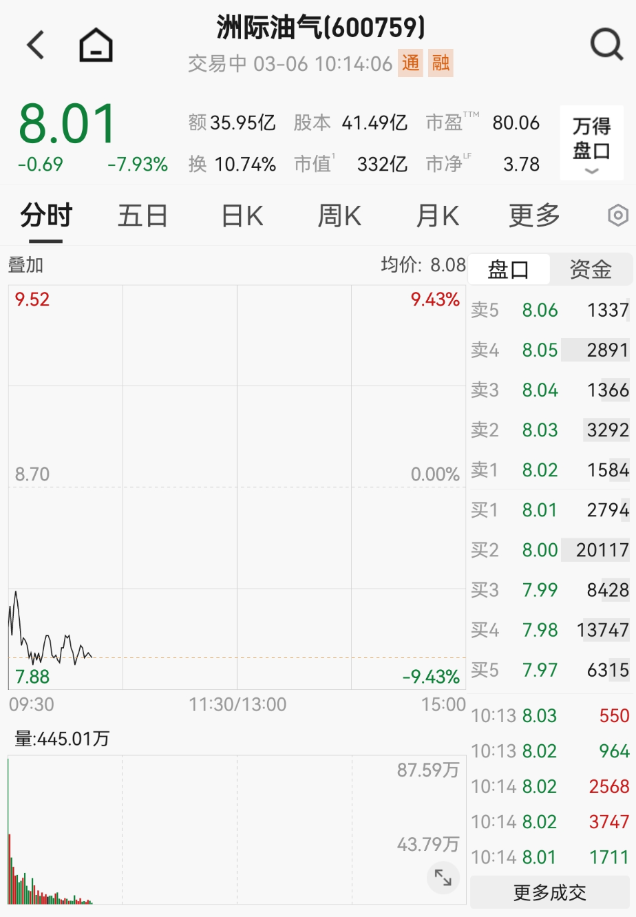 3月6日,石油石化板块呈现低开低走的态势。洲际油气开盘时跌幅超过9%,和顺石油、准油股份、石化油服等个股纷纷低开,上午整体行情表现不佳。