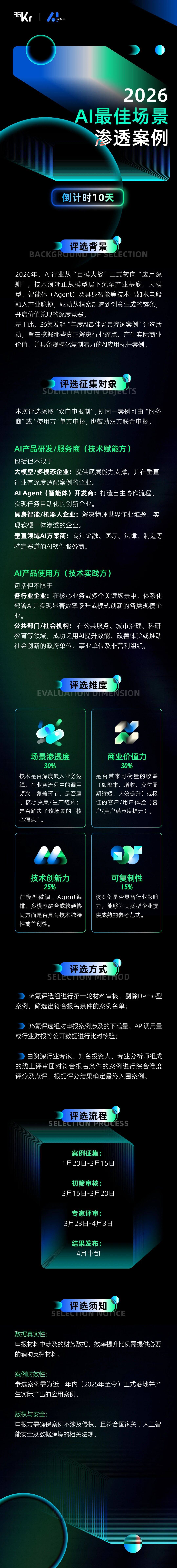2026 AI最佳场景渗透案例征集进入倒计时10天 3月15日报名通道即将关闭