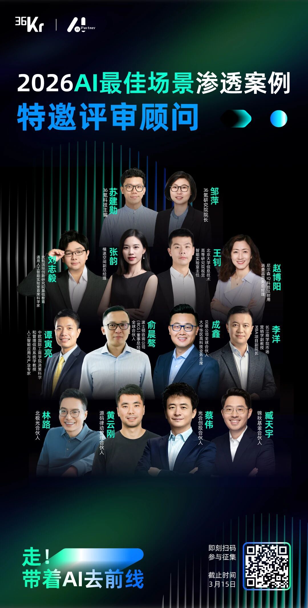 今年1月,36氪发起2026年度AI最佳场景渗透案例评选,旨在挖掘真正解决行业痛点、产生实际商业价值且具有可复制性的AI应用标杆案例。自征集启动以来,已吸引众多企业与机构申报,覆盖智能制造、内容生产、本地生活、金融医疗、公共服务等数十个赛道,优质案例不断涌现。