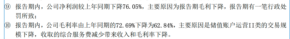 对于净利润下降的原因,汇元科技在财报中表示,主要是报告期内毛利下降,同时受到一笔行政处罚的影响。