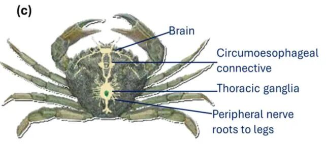 但科学研究改变了这一认知。2023年《生物学》杂志的研究首次提供电生理学证据,证实欧洲滨蟹有伤害感受器。瑞典哥德堡大学的实验中,螃蟹被戴上“脑电帽”,涂抹醋酸时神经系统会发送明确电信号,浓度越高反应越强,还能区分化学腐蚀与机械切割的刺激模式。