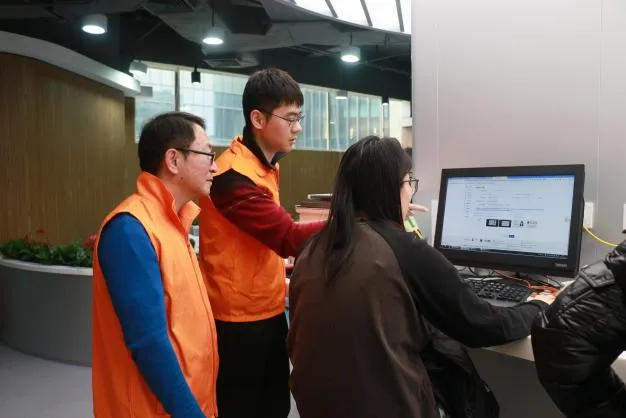 咨询台前,工作人员与志愿者主动询问办事需求,耐心解答政策疑问;大厅窗口工作人员带领志愿者运用“静小A”数字人,将企业遇到的疑难问题输入系统,实现智能答疑。网办区内,志愿者化身“数字服务向导”,手把手指导企业人员完成线上办理,让“数据多跑路,企业少跑腿”的政务服务便利真正触手可及。