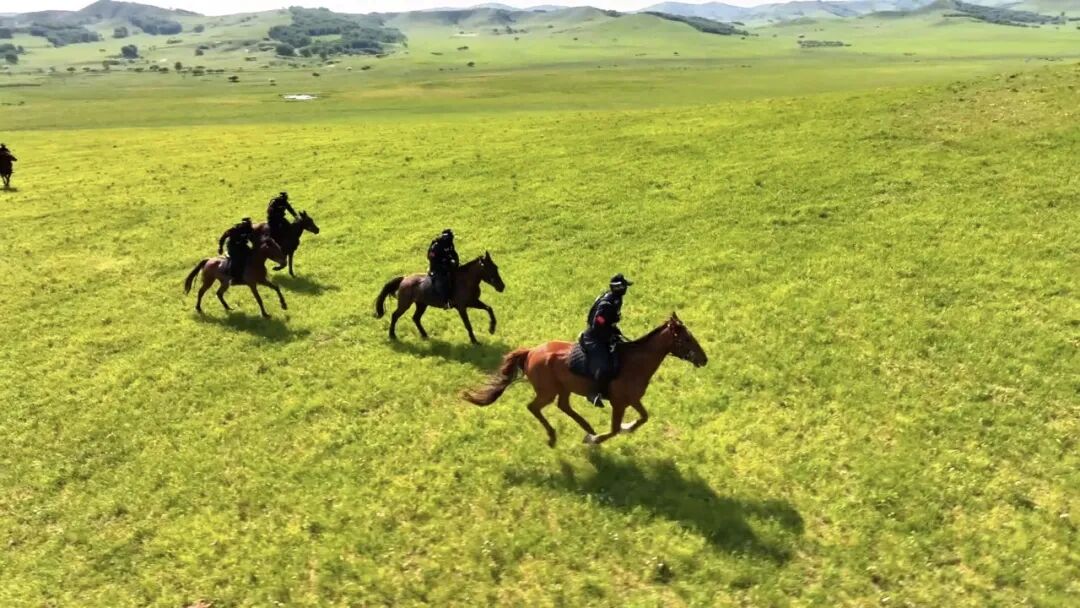 单爽和同事们策马出警的身影充满力量。盛夏的乌兰布统草原水草丰美、风光如画,骑警队员身着警服,策马穿梭在青山绿水间,灵动的身影成为草原上一道流动的平安屏障。