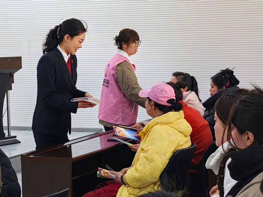 为提升普法实效,庄法官与妇联干部现场发放普法小册子,提高群众对反家暴法规的知晓率,增强妇女自我保护与依法维权能力。