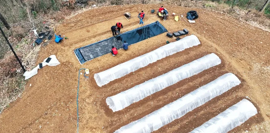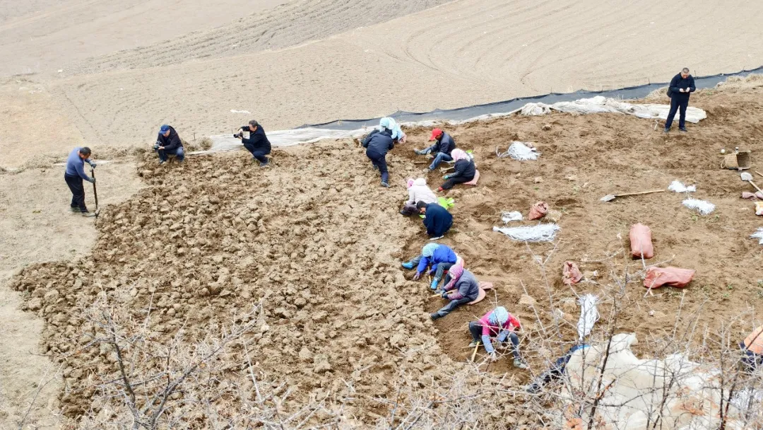 两当显龙镇、站儿巷镇鱼池乡的群众和志愿者们,有条不紊地开展深翻土地、整理苗床、消毒施肥等育苗准备工作,操作娴熟、一丝不苟。