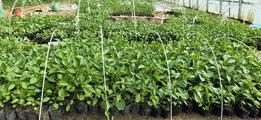 礼县崖城镇山根村的蔬菜大棚内绿意盎然,嫩绿的豆苗、番茄苗、辣椒苗等破土吐翠、舒展新叶,工人们正忙着间苗、补水,精心管护。