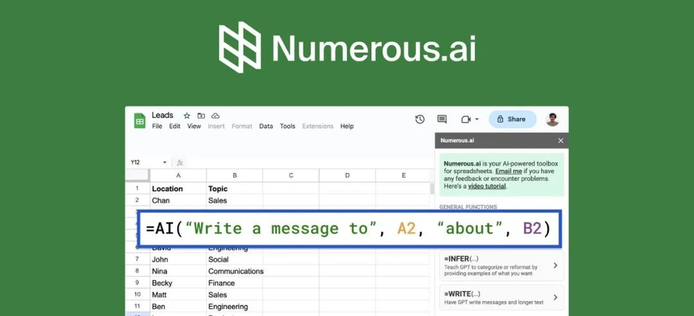 在此期间,Walz和Mehran把一款GPT-3 Google Sheets插件发展成了正式产品Numerous.ai。这款产品能让企业用户直接在表格里调用大语言模型,上线没多久就实现了正向现金流,商业转化能力拉满。