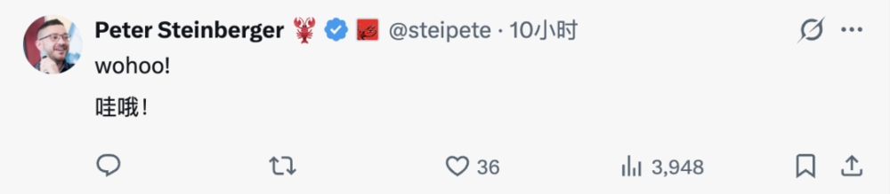 有趣的是,同样刚加入OpenAI的“龙虾之父”Peter Steinberger,也跑到评论区互动,上演了一出新同事“贴贴”的戏码。