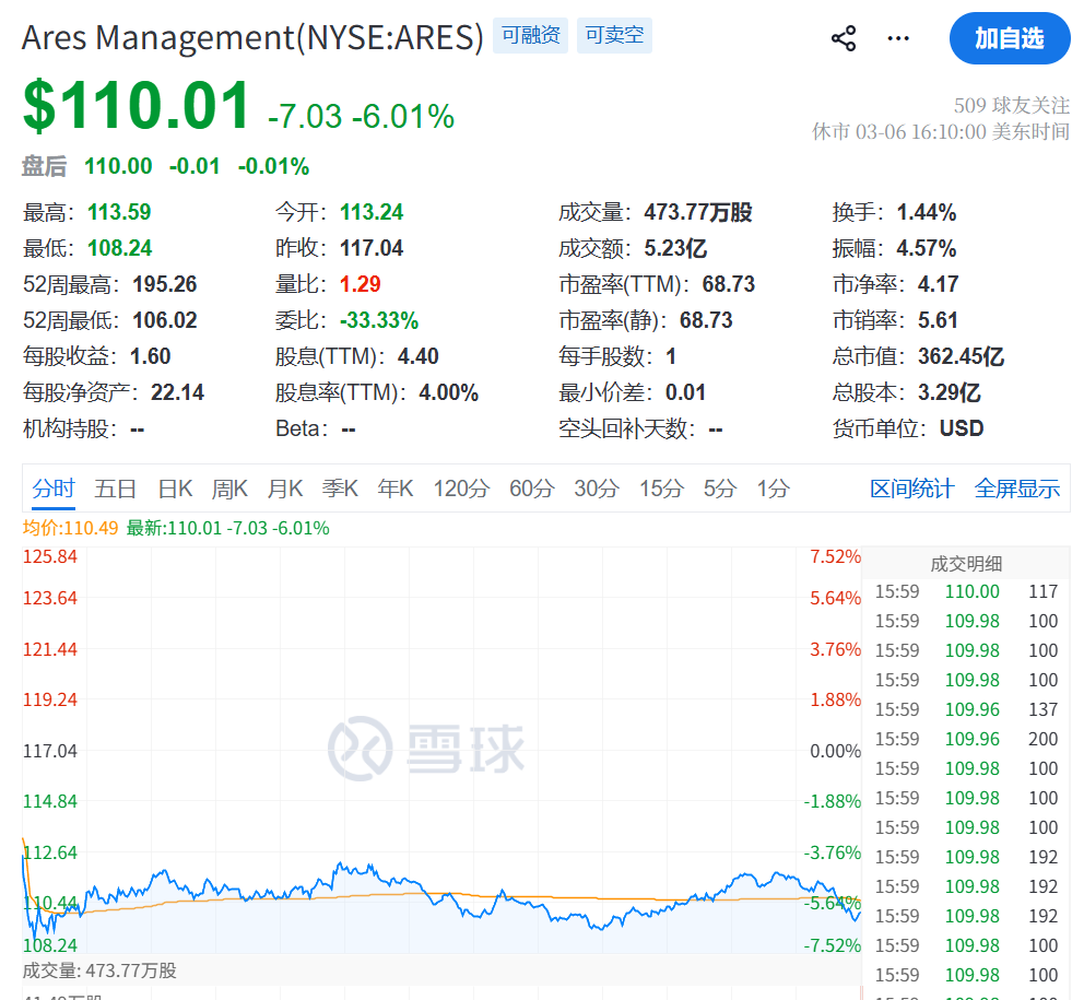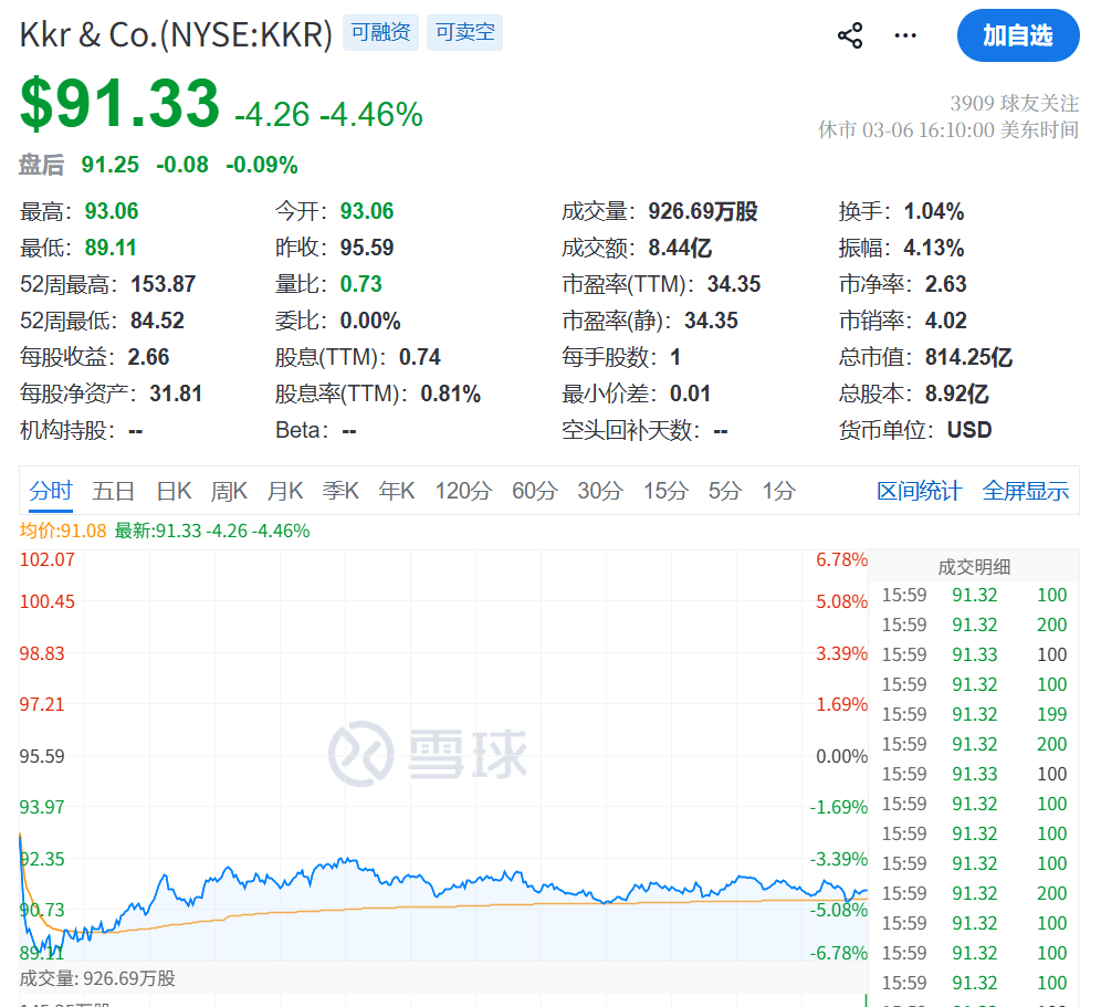 除贝莱德外,KKR、Ares Management等另类资产管理公司的股价也出现大幅下跌。