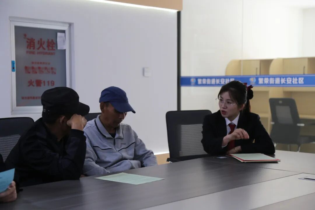 上午的喧嚣如约而至,每个岗位都在忙碌。诉讼服务中心窗口前,干警耐心倾听群众诉求,为务工人员梳理欠薪证据,为老人递上老花镜,手把手指导填写文书,用平实语言解释专业法律。
