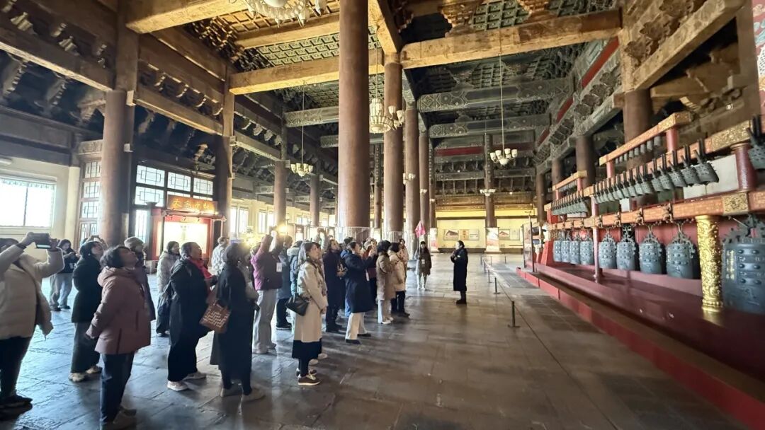 老师们跟随着讲解员的脚步,穿过五彩琉璃门,沿着古老的甬道缓步前行。在大殿中,老师们或驻足观赏,或轻声交流,在感受皇家建筑恢宏气势的同时,也被古代工匠的精湛技艺和中华文化的博大精深深深打动。大家纷纷拿出手机,从不同角度记录下精美的建筑细节与春日景致,在光影交织中品味古都的独特魅力。