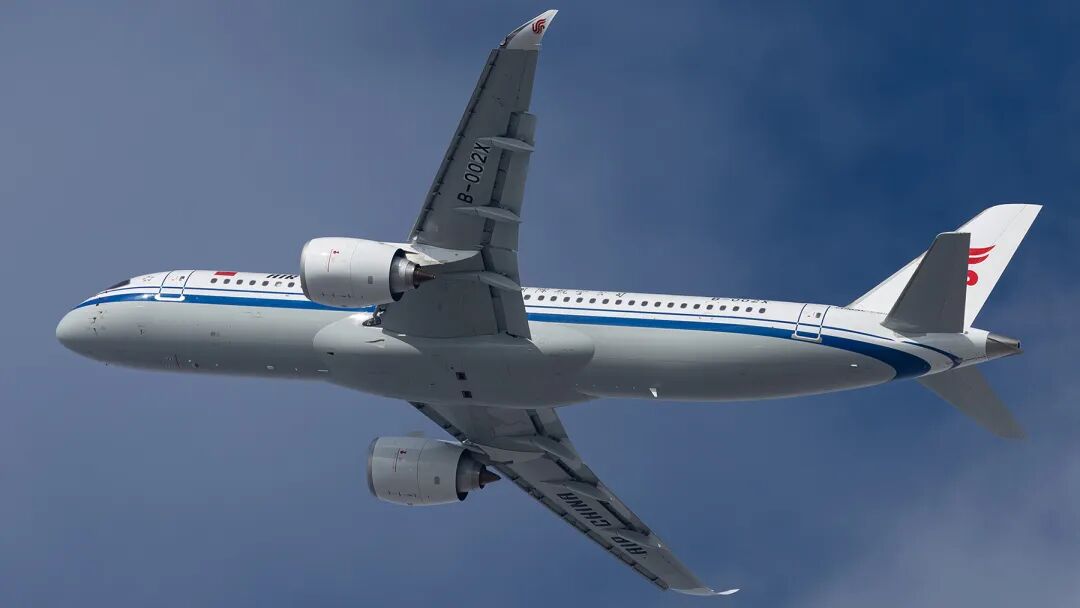 林佳信在上海浦东机场拍摄的国航C919试飞