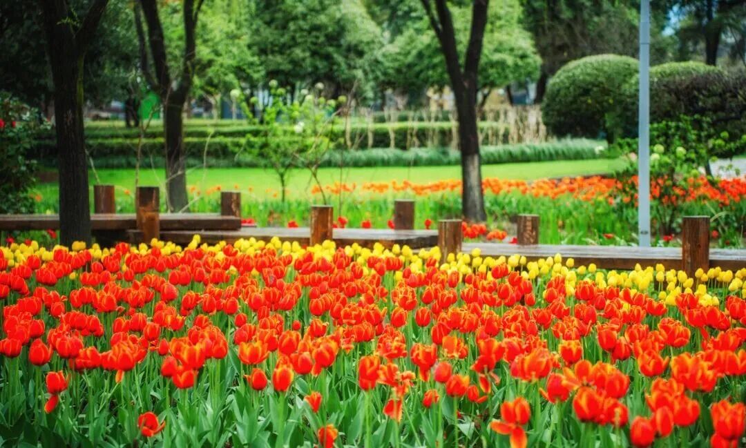 处州公园4.5万余株郁金香即将开放,无需远赴杭州太子湾。