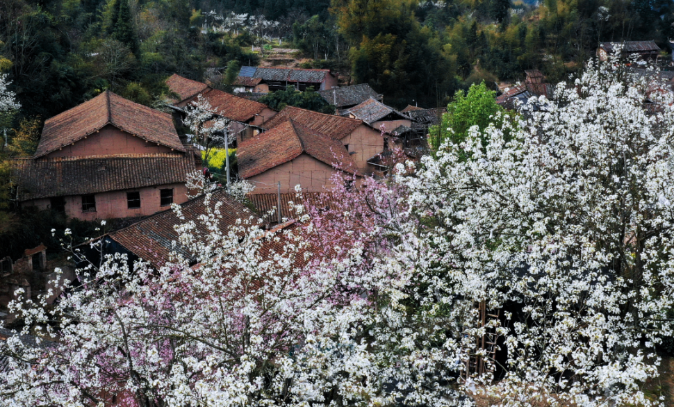 雾溪乡樱花初春绽放,如云似霞。