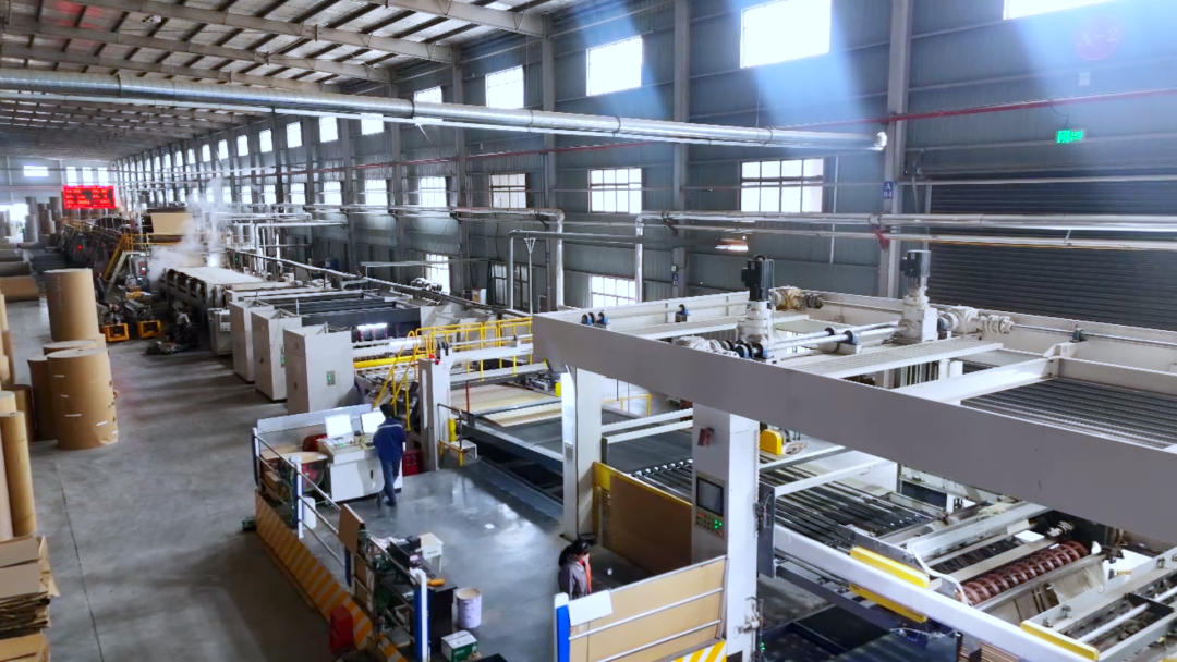 走进利华包装的生产车间,处处是热火朝天的忙碌景象。智能重型包装纸生产线高速运转,机声轰鸣,一卷卷原纸经过高温处理、涂胶、分切等工序,被加工成平整厚实的瓦楞纸板。